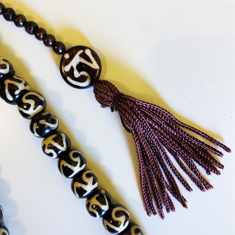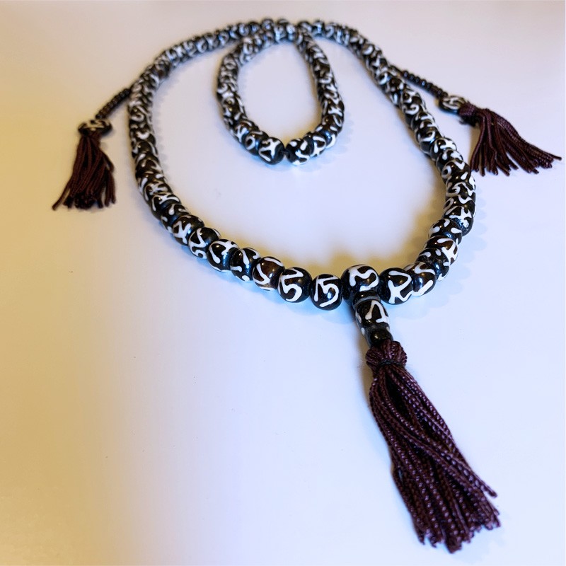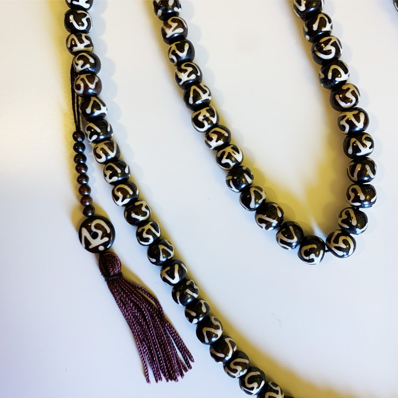 Mala Tibétain Élastique – Bois peint Noir (Petit)