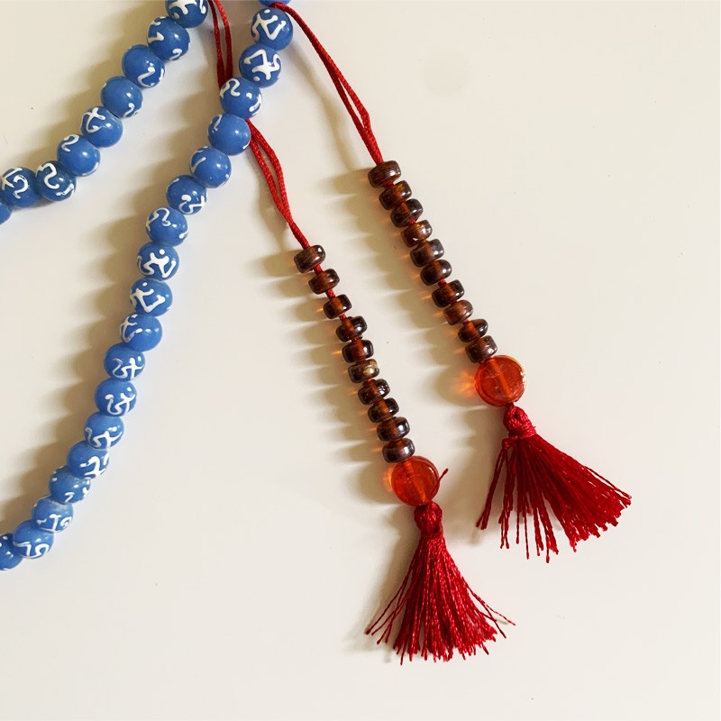Tibetan Mala - Glass Ohm (Blue) quantity