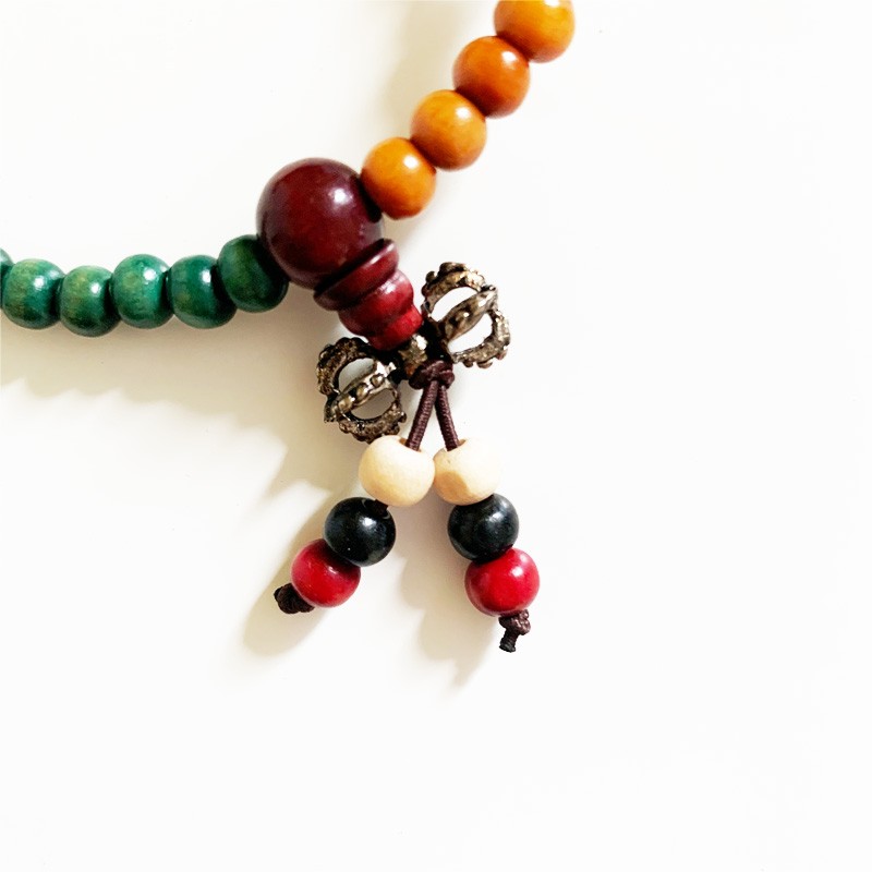 Elastic Tibetan Mala – Multi-colored Painted Wood (Small)
